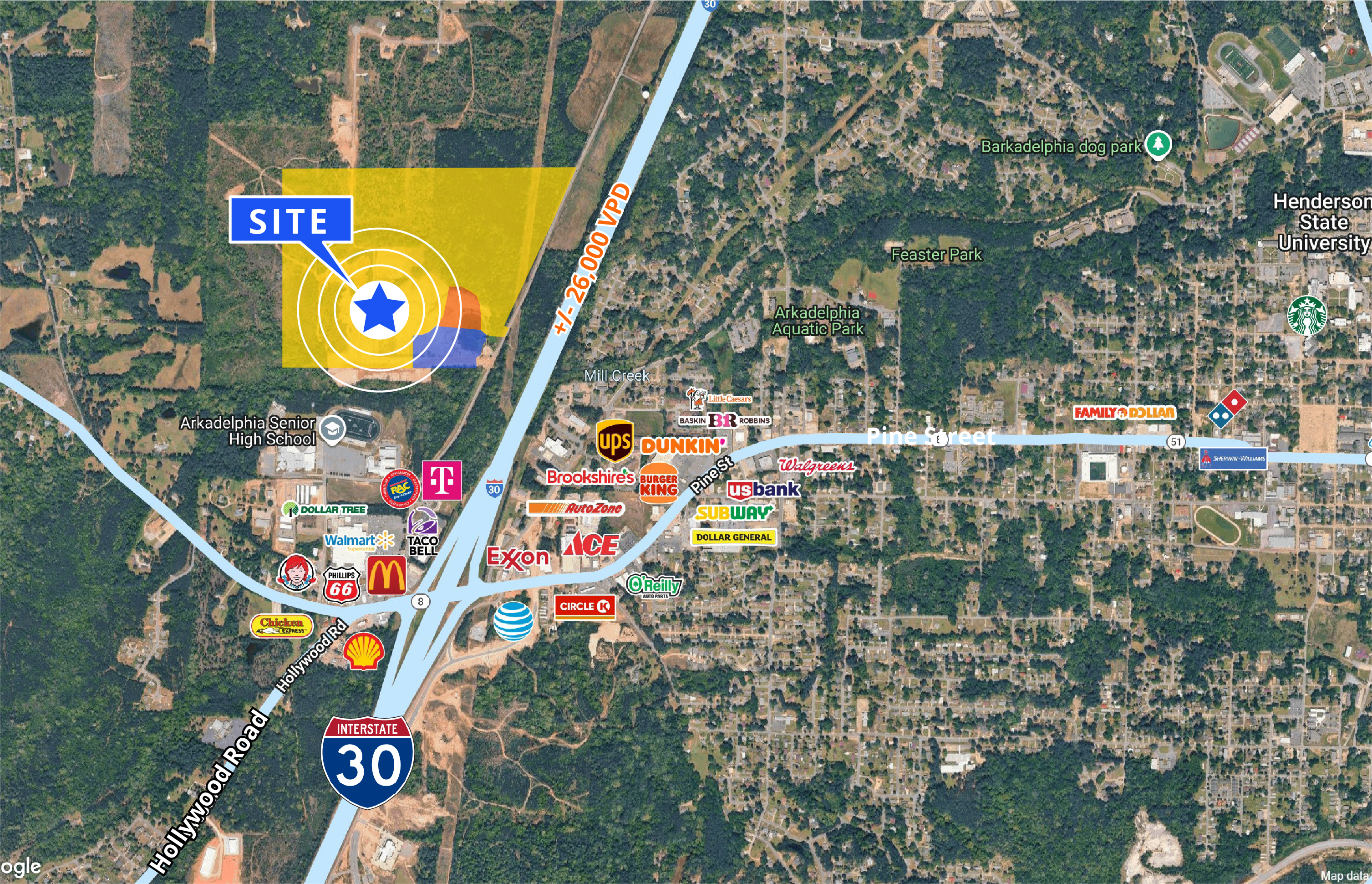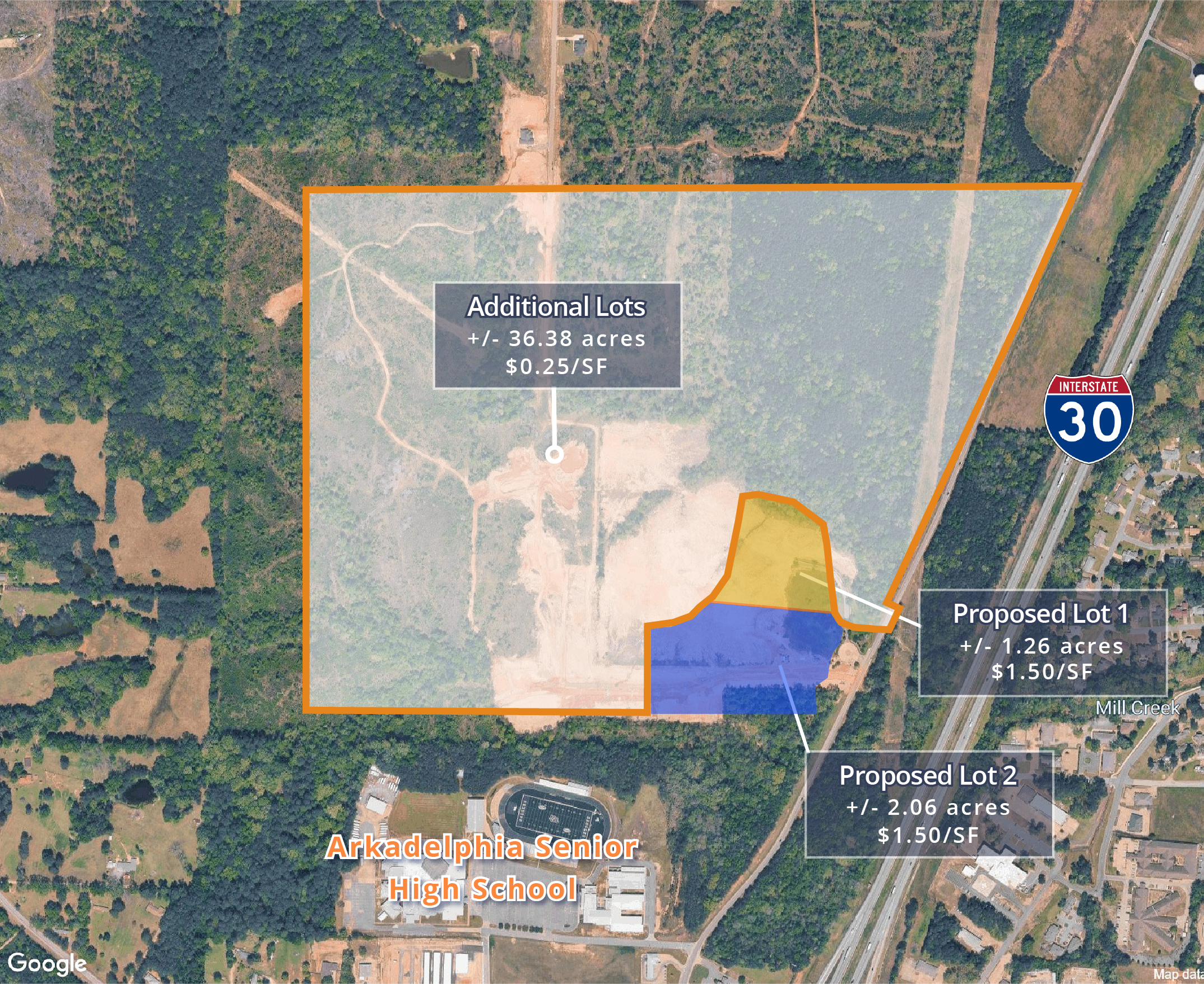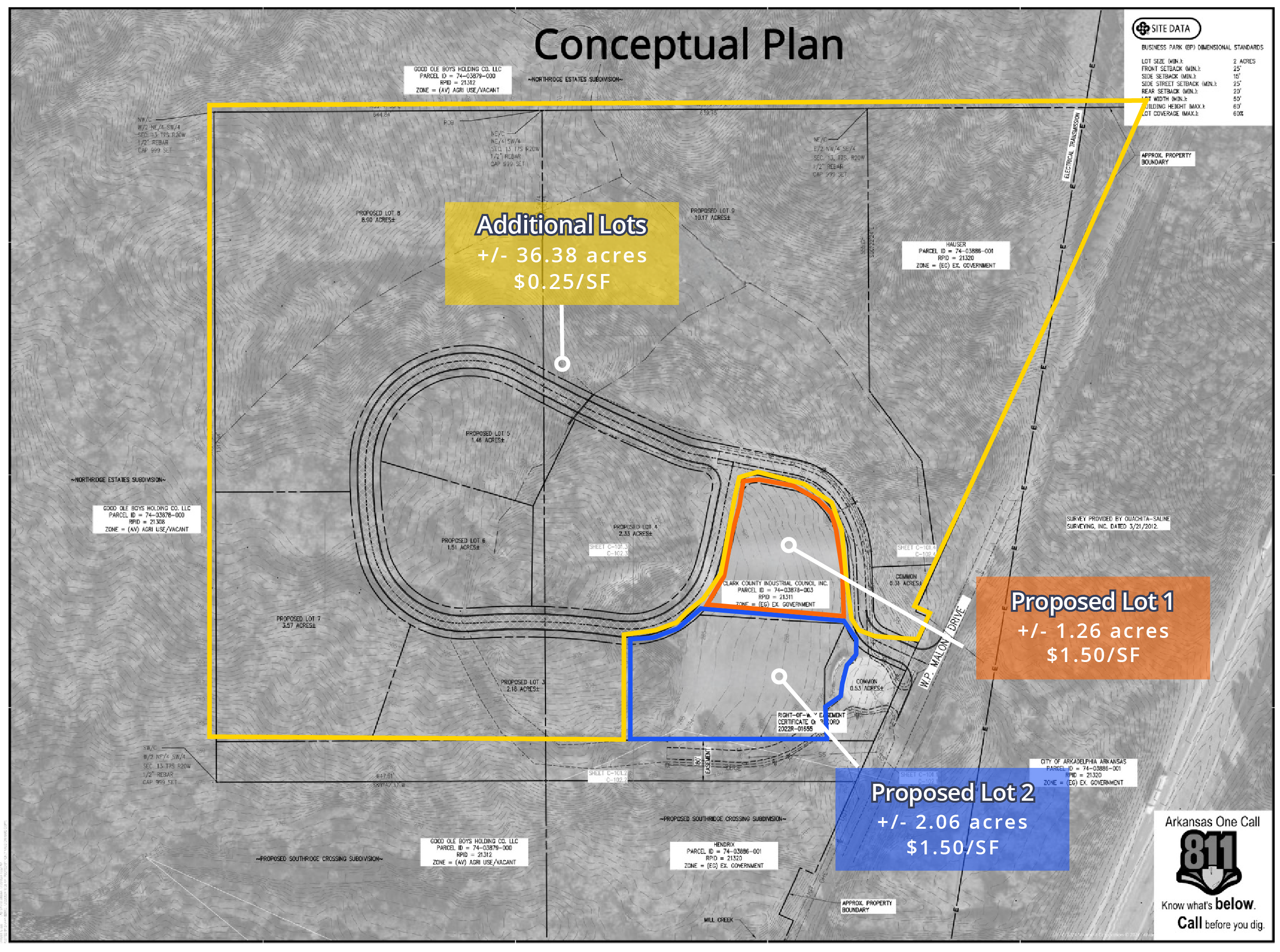 The Clark County Business & Technology Park has a total of 40 acres available and is located at 325 W.P. Malone Drive, just 0.25 miles from an I-30 exit. The site runs parallel to I-30.