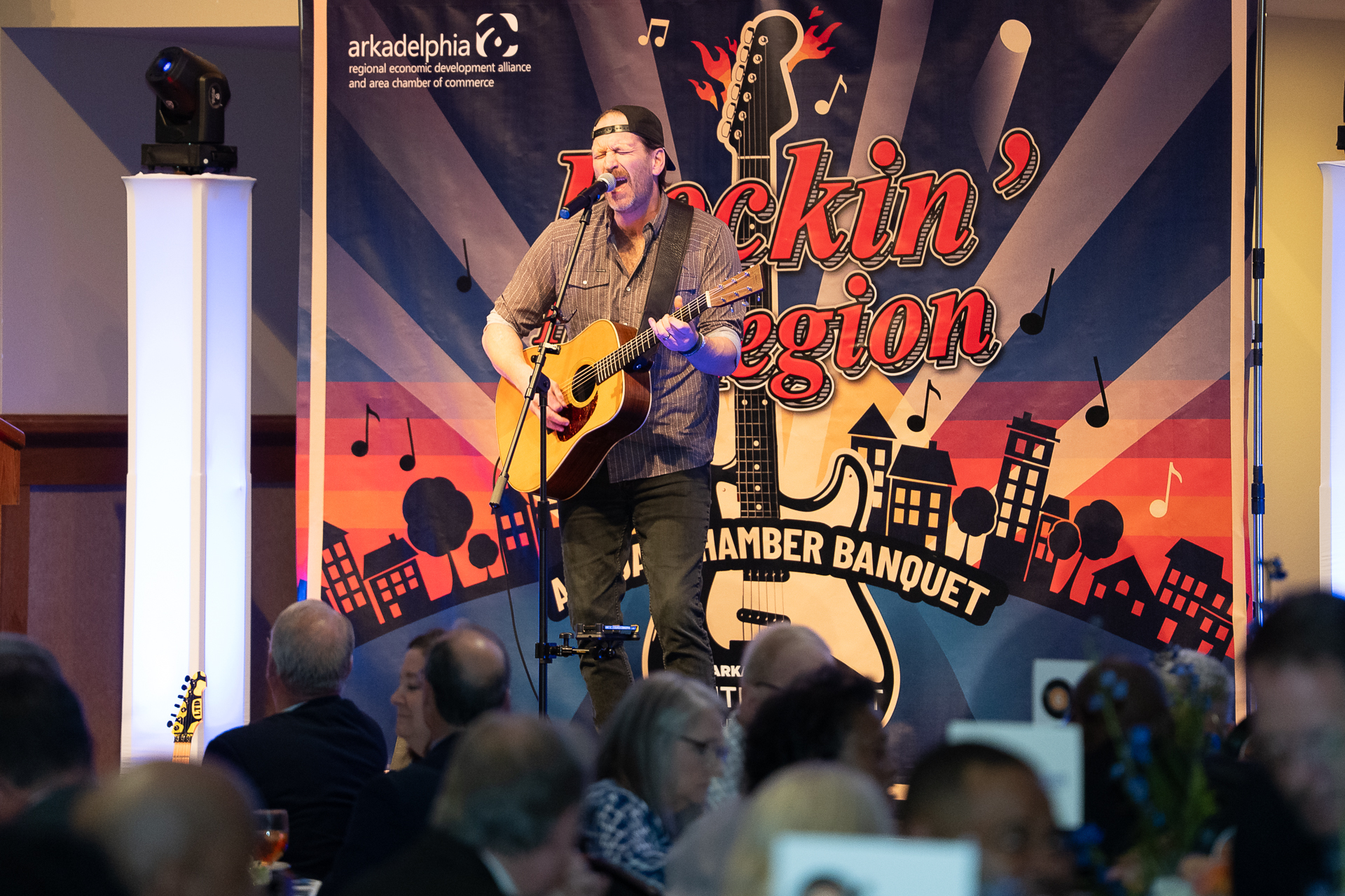 The tone for the night was set by Arkansas native and The Voice finalist, Barrett Baber. Baber, who was born in Arkadelphia and later attended Ouachita Baptist University, delivered a soulful performance that Shelley Short, President and CEO of the Arkadelphia Alliance and Chamber, described as the perfect catalyst for the night’s theme. Attendees were also treated to the latest edition of Arkadelphia Life magazine and custom guitar picks as a thank you for “picking” Clark County.