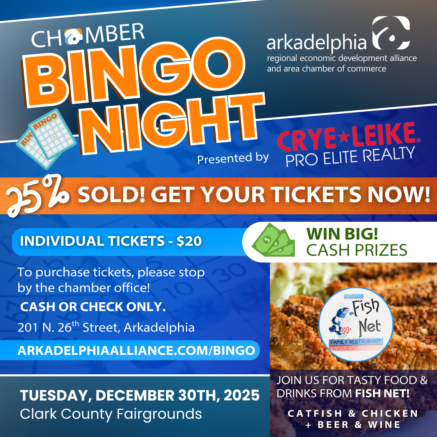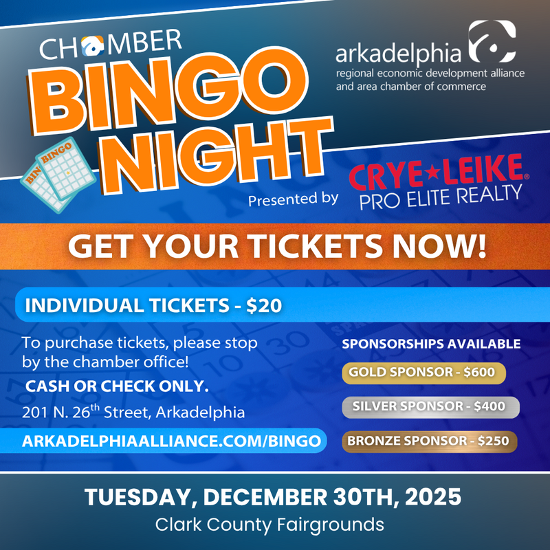 We are so excited for our first-ever Chamber Bingo Night, presented by Crye Leike Pro Elite Realty! Join us on Tuesday, December 30th at 6 PM at the Clark County Fairgrounds for an evening full of prizes, fun, and community spirit!