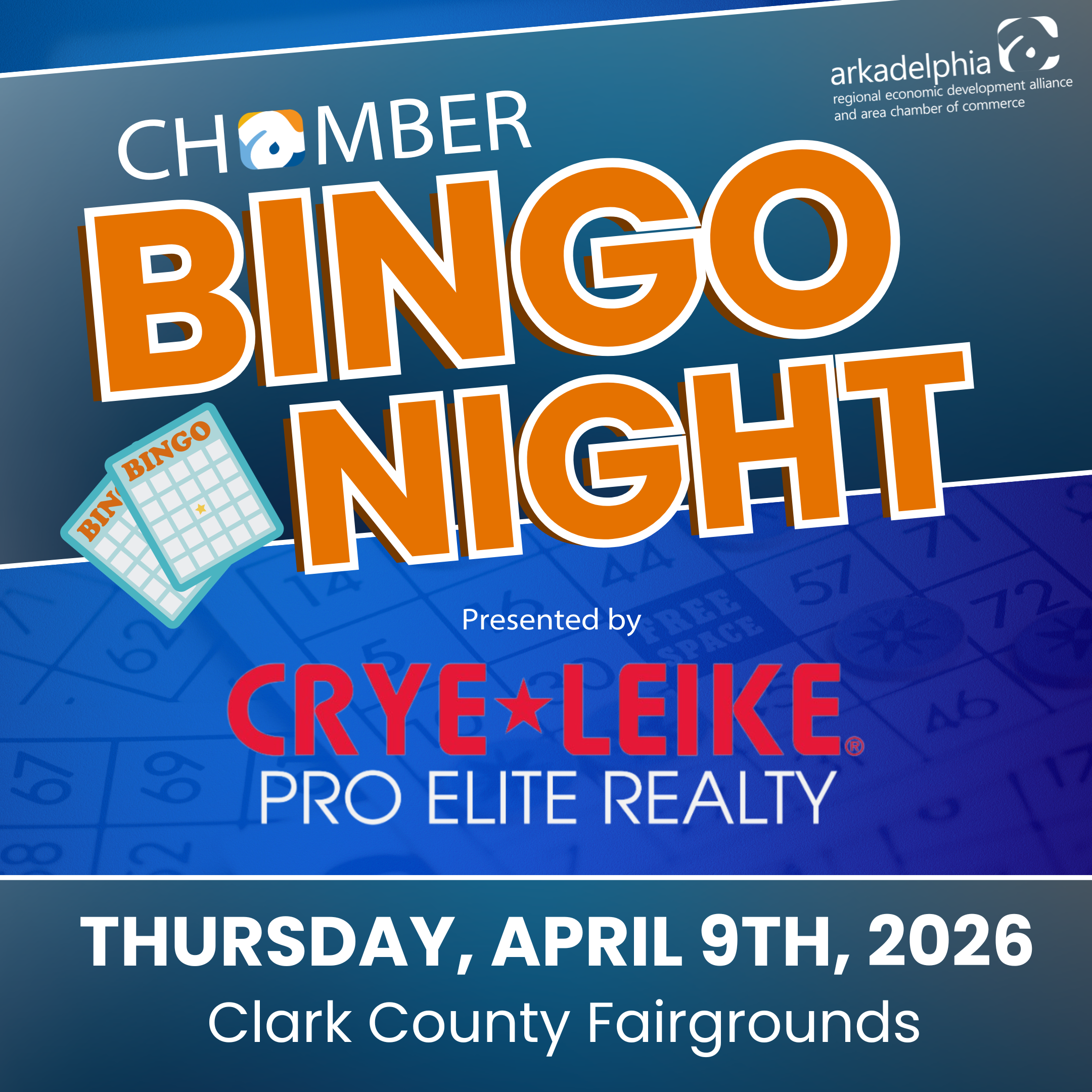 We are so excited for our second Chamber Bingo Night, presented by Crye Leike Pro Elite Realty! Join us on Thursday, April 9th at 6 PM at the Clark County Fairgrounds for an evening full of prizes, fun, and community spirit! DOORS OPEN at 5:15PM.
