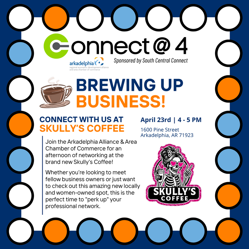 Connect @ 4, sponsored by South Central Connect, is a free quarterly networking event for members of the Arkadelphia Alliance and Area Chamber, as well as those interested in joining our thriving Chamber community! This event provides the perfect opportunity to connect, celebrate, and engage with local businesses, organizations, and leaders who are shaping the future of Clark County.