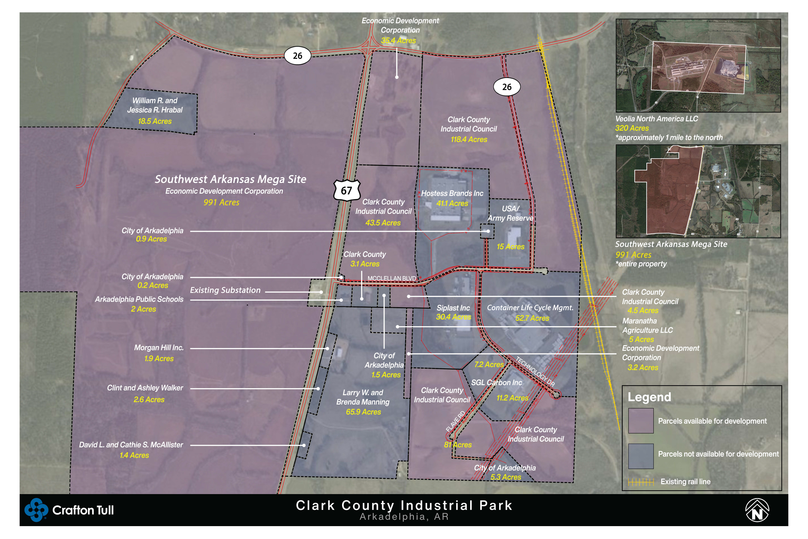 Position your business for success at one of Arkansas’s premier industrial sites! Located in Gum Springs, Arkansas, just one mile from Interstate 30 and adjacent to the Clark County Industrial Park, the Southwest Arkansas Mega Site offers 991 contiguous acres with extensive due diligence complete, infrastructure upgrades finalized in 2023, and a Conceptual Master Plan by Burns & McDonnell.